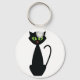 A green eyed black cat sitting up straight. This design looks really effective on this Keychain