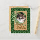 Cute little calico kitten with jade green eyes nestled in jade plant is a unique and cheerful happy birthday greeting postcard. Original photography and design by Anura Design Studio.