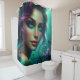 Gaze upon “Green-Eyed Mermaid,” a captivating shower curtain from H2OArt by AlexSandra that offers a glimpse into an enchanting underwater world. This stunning design invites you to witness the mesmerising teal green and turquois waters that cradle a glamourous mermaid. Her beautiful eyes and striking purple hair captivate all who gaze upon her, creating a breathtaking masterpiece that radiates with life and colour on the vibrant fabric of your shower curtain.