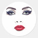 Green Eyes Red Lips Woman Face Original Makeup Art Classic Round Sticker