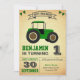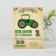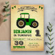 Amaze your guests with this cool tractor theme birthday party invite featuring a cute green farm tractor with vibrant typography on a vintage parchment background. Simply add your event details on this easy-to-use template to make it a one-of-a-kind invitation. Flip the card over to reveal a rustic barn wood texture on the back of the card.