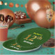 This simple, customisable, birthday-themed paper plate design features a customisable message like "FirstName’s 12th Birthday!", where the name can be changed, and with the "12th" having a faux/imitation gold-like appearance. It also features a green coloured background. Paper plates like these could perhaps be used at a party being held to celebrate somebody’s twelfth birthday. [~Z0000145]