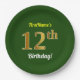 Green, Faux Gold 12th Birthday + Custom Name Paper Plate