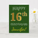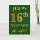Green, Faux Gold 16th Wedding Anniversary + Name Card