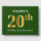 This guest book design features the ordinal number "20th" with a faux gold-like appearance. It also features a customised name, and a green coloured background. It could be used at a party for somebody celebrating their twentieth birthday. [~Z0000056]