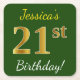 Green, Faux Gold 21st Birthday + Custom Name Square Paper Coaster