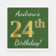 Green, Faux Gold 24th Birthday + Custom Name Napkin