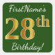 Green, Faux Gold 28th Birthday + Custom Name Square Sticker