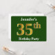 Green, Faux Gold 35th Birthday Party + Custom Name Invitation