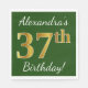 Green, Faux Gold 37th Birthday + Custom Name Napkin