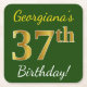 Green, Faux Gold 37th Birthday + Custom Name Square Paper Coaster