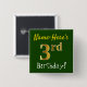 Green, Faux Gold 3rd Birthday, With Custom Name 15 Cm Square Badge