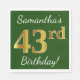 Green, Faux Gold 43rd Birthday + Custom Name Napkin