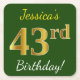 Green, Faux Gold 43rd Birthday + Custom Name Square Paper Coaster