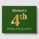 This guest book design features the ordinal number "4th" with a faux gold-like appearance. It also features a customised name, and a green coloured background. It could be used at a party for somebody celebrating their fourth birthday. [~Z0000056]