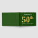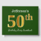 This guest book design features the ordinal number "50th" with a faux gold-like appearance. It also features a custom name, and a green coloured background. It could be used at a party for somebody celebrating their fiftieth birthday. [~Z0000056]