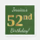 Green, Faux Gold 52nd Birthday + Custom Name Napkin