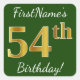 Green, Faux Gold 54th Birthday + Custom Name Square Sticker