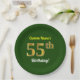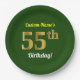 Green, Faux Gold 55th Birthday + Custom Name Paper Plate