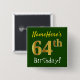 Green, Faux Gold 64th Birthday, With Custom Name 15 Cm Square Badge