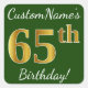 Green, Faux Gold 65th Birthday + Custom Name Square Sticker