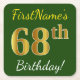 Green, Faux Gold 68th Birthday + Custom Name Square Paper Coaster