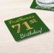 Green, Faux Gold 71st Birthday + Custom Name Square Paper Coaster