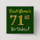 Green, Faux Gold 71st Birthday, With Custom Name 15 Cm Square Badge