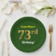 Green, Faux Gold 73rd Birthday + Custom Name Paper Plate
