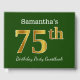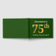 This guest book design features the ordinal number "75th" with a faux gold-like appearance. It also features a personalised name, and a green coloured background. It could be used at a party for somebody celebrating their seventy fifth birthday. [~Z0000056]