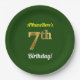 Green, Faux Gold 7th Birthday + Custom Name Paper Plate