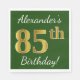 Green, Faux Gold 85th Birthday + Custom Name Napkin