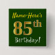 Green, Faux Gold 85th Birthday, With Custom Name 15 Cm Square Badge