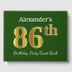 This guest book design features the ordinal number "86th" with a faux/imitation gold-like appearance. It also features a customised name, and a green coloured background. It could be used at a party for somebody celebrating their eighty sixth birthday. [~Z0000056]