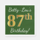 Green, Faux Gold 87th Birthday + Custom Name Napkin
