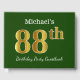 Green, Faux Gold 88th Birthday Party + Custom Name Guest Book