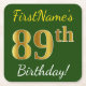 Green, Faux Gold 89th Birthday + Custom Name Square Paper Coaster