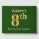 Green, Faux Gold 8th Birthday Party + Custom Name Guest Book