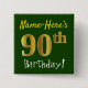 Green, Faux Gold 90th Birthday, With Custom Name 15 Cm Square Badge