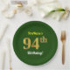 Green, Faux Gold 94th Birthday + Custom Name Paper Plate