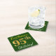 Green, Faux Gold 95th Birthday + Custom Name Square Paper Coaster