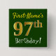 Green, Faux Gold 97th Birthday, With Custom Name 15 Cm Square Badge