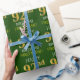 This wrapping paper design features a message like "HAPPY 92nd BIRTHDAY", with the "92nd" having a faux/imitation gold appearance. It also features a name that can be personalised, and a green coloured background. It could perhaps be used when wrapping gifts being given for somebody’s ninety second birthday. [~Z0000132]