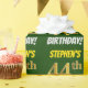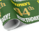 This wrapping paper design features a message like "STEPHEN’S 44th BIRTHDAY!", with the "44th" having a faux/imitation gold-like colour appearance, and with the name and "BIRTHDAY" in a fun, bold font. The name is customisable, and the background is coloured green. Wrapping paper like this could perhaps be used when wrapping birthday gifts being given to somebody in celebration of their forty fourth birthday. [~Z0000208]