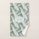 Beautiful light green and gray feathers cover these lovely bathroom towels with a monogrammed center.