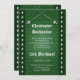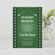 A dark green fencing birthday party invitation that has two epees at the top of the invitation and diamond designs on the side. The invitation looks mediaeval with blackletter font, great for a knight birthday party.