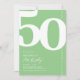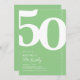 Introducing a trendy green and white 50th birthday party invitation that seamlessly blends the old-world charm of the bold serif font number '50' with a modern, user-friendly personalizable template. This invitation isn't just a card, it's a meaningful keepsake to cherish the milestone of turning 50.