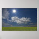 green filed, blue sky, white cloud poster