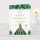 This elegant and glamorous birthday card can be personalized with a name or title such as daughter, granddaughter, niece, friend etc. The design features a beautiful princess with blonde hair and fair skin in a green ball gown. The text combines handwritten script and modern sans serif fonts for a classy and sophisticated look. The floral arrangements, butterflies and gold confetti create the perfect blend of rustic and chic.