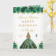 This elegant and glamourous sweet sixteen birthday card can be personalised with a name or title such as daughter, granddaughter, niece, friend etc. The design features a beautiful princess with blonde hair and fair skin in a green ball gown. The text combines handwritten script and modern sans serif fonts for a classy and sophisticated look. The floral arrangements, butterflies and gold confetti create the perfect blend of rustic and chic.
